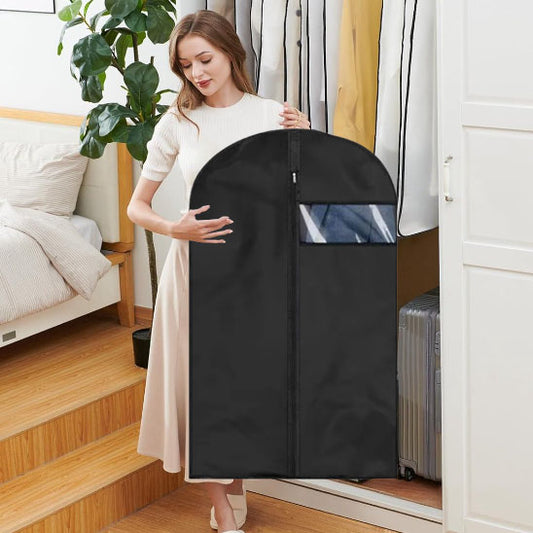 Ensuite, pensez aux housses de protection. Elles sont top pour protéger vos beaux habits de la poussière et des mites. Notre housse pour vêtement est parfaite pour les manteaux ou les robes que vous portez pas souvent. Comme ça, ils restent nickel jusqu'à la prochaine occasion !