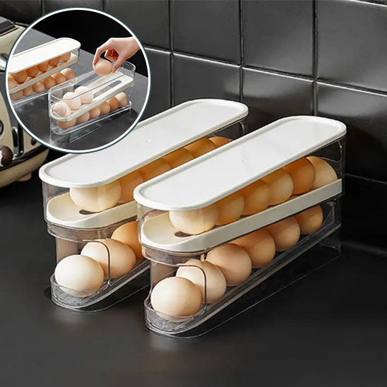 Notre rangement facile pour oeufs est équipé d'un système de distribution ingénieux. Plus besoin d'ouvrir et fermer constamment le couvercle ou le tiroir pour atteindre vos oeufs. Il vous suffit de retirer le premier oeuf, et les suivants se mettent automatiquement en place. Cette fonctionnalité vous fait gagner un temps précieux lors de la préparation de vos repas.