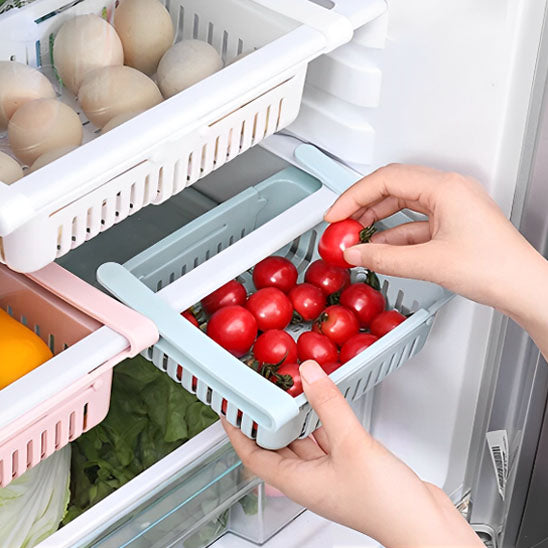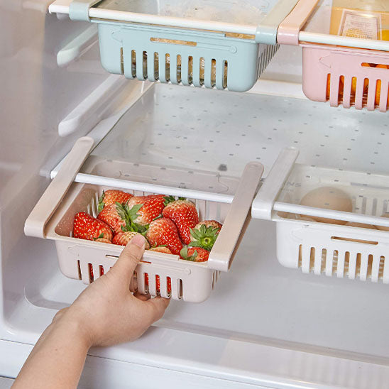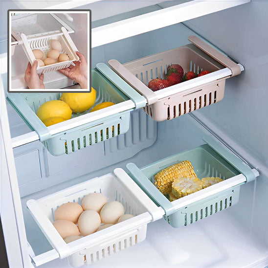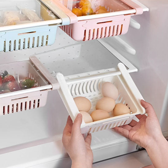 Notre boîte de rangement s'adapte parfaitement à la plupart des réfrigérateurs du marché. Son mécanisme coulissant en fait un accessoire extrêmement pratique, vous permettant d'accéder facilement à vos aliments, même dans les coins les plus reculés de votre frigo. De plus, sa polyvalence ne se limite pas au réfrigérateur : vous pouvez également l'utiliser dans vos placards de cuisine, votre garde-manger ou même votre salle de bain pour un rangement optimal de vos produits.