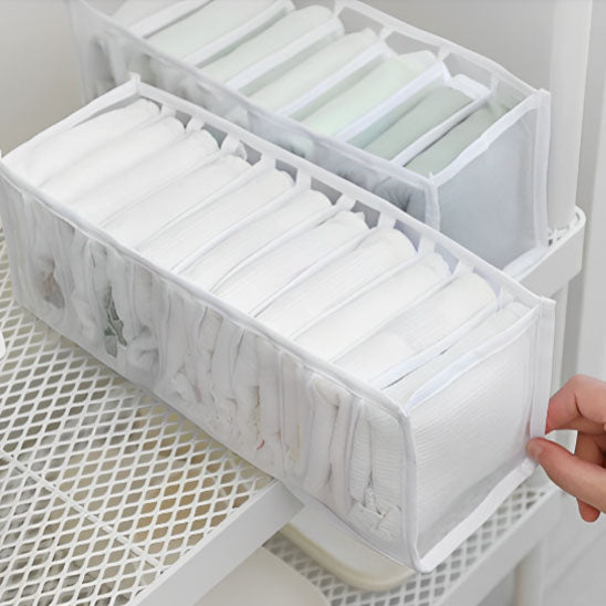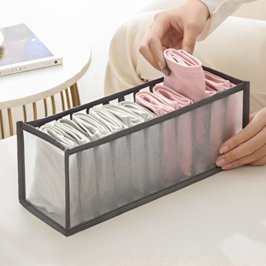 Fini le chaos dans votre tiroir à sous-vêtements ! Notre range vêtement offre des compartiments parfaits pour séparer et organiser vos sous-vêtements, soutiens-gorge et chaussettes. Vous trouverez facilement ce que vous cherchez, même dans la pénombre du matin.