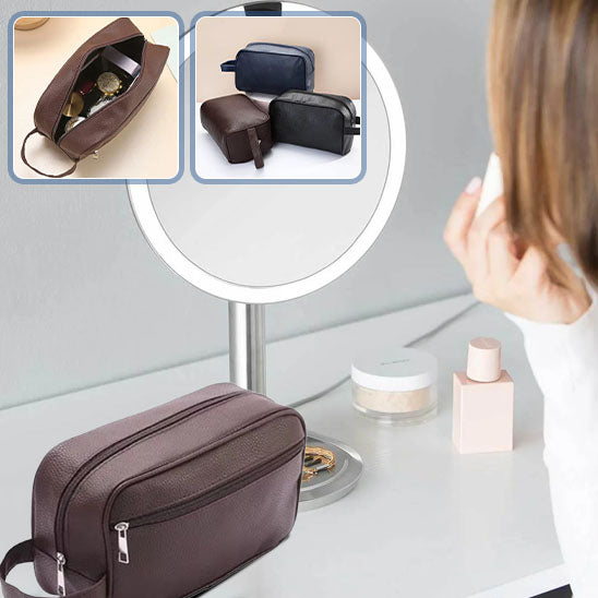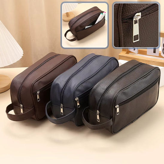 Notre sac de rangement de toilette de voyage combine praticité et élégance pour répondre aux besoins des hommes modernes en déplacement. Fini le stress de trouver vos produits de toilette éparpillés dans votre valise ou le cauchemar des flacons qui fuient. Avec ce sac organisateur, vos articles restent en place et protégés, vous permettant de vous concentrer sur l'essentiel de votre voyage.