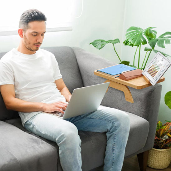 Imaginez-vous confortablement installé dans votre canapé, avec tout ce dont vous avez besoin à portée de main. Notre table d'appoint de canapé en bambou rend cela possible en un clin d'œil. Plus besoin de vous lever pour atteindre votre téléphone ou votre tasse de café. Cette solution ingénieuse s'adapte parfaitement à votre mode de vie moderne et actif.