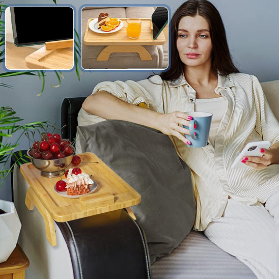 Imaginez-vous en train de regarder votre série préférée, avec votre smartphone parfaitement positionné sur le support, vos snacks à portée de main, et votre boisson favorite posée en toute sécurité. Notre table d'appoint de canapé en bambou transforme vos moments de détente en expériences de confort absolu. Elle s'adapte à votre style de vie, que vous soyez un binge-watcher passionné ou un lecteur assidu.